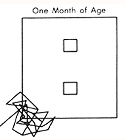 (Die schwarze Linie zeigt die Blickbewegung des Kindes.)