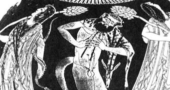 Silen und Mänaden. Griechische Vase (um 500 v. Chr.)