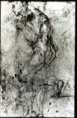 Pontormo unterstreicht diese Umkehr des traditionellen Animationsvorgangs von der inneren zur äußeren Bewegung durch den bildlichen Kontext: Im Hintergrund sehen wir das auflodernde Tieropfer als Zeichen, dass das Venusgebet erhört wurde. Pygmalion aber kniet nicht vor dem Altar, sondern vor der sich regenden Frauenfigur. Seine andächtige Demut gilt ihr, und mit dieser Haltung erscheint er nicht mehr als ihr Schöpfer, sondern als Bewunderer eines autonomen Geschöpfs. Der rechts abgebildeten Studie zu dem Gemälde, die unter Mithilfe seines Schülers Bronzino (1503-1572) entstand, können wir entnehmen, wie sorgfältig Pontormo darum bemüht war, seinem Pygmalion den Ausdruck der Demut zu verleihen. Der Gesichtsausruck wirkt kontemplierend und innig. Damit wird uns zugleich ein Betrachtermodell vorgeführt, das sich unserer eigenen Rezeptionshaltung empfielt: als Reaktion auf die äußere Bewegung der Statue durch die innere Bewegung des Betrachters.