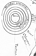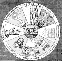 Die folgende Rekonstruktion ist teilweise spekulativ und erhebt keinen Anspruch auf wissenschaftliche Geltung. Es geht mir lediglich darum, experimentell zu erkunden, wie Fludds Theater funktioniert haben könnte, und ein Gespür dafür zu entwickeln, was es heißt, sich eines solchen Theaters zu bedienen im Vergleich mit anderen Formen der Wissensrepräsentation. Beide Theater also haben nach Fludd quinque portas. Warum es gerade fünf sind, wird von ihm nicht näher spezifiziert. Zudem ist die Faszination für diese Zahl derart evident in Fludds Schriften, daß man von einer regelrechten "Pentamanie" (Schmidt-Biggemann) bei ihm sprechen kann. Doch es gibt zwei Fünfergruppen, die einen zentralen Stellenwert für fludds Ars Memoriae haben: Zum einen die fünf Elemente - die bei Fludd aufgeteilt sind in Licht/Feuer, feinstoffliche Luft, grobstoffliche Luft, Wasser und Erde - und zum anderen die fünf Sinne (Fludd nennt sie auch die "Fenster der Seele"). Beide Fünfergruppen stehen in einem genauen Zusammenhang, wie das nachstehende Analogieschema zeigt (und aussagt: "Mundi elementa & elementata senties prout sunt").