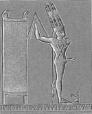 Thoth mit seinem Schreibzeug vor dem Sonnengott Re-Harachte, der als Götterkönig thront. Aus dem Totenbuch der Prinzessin Nestanebteschra aus dem 11. Jh. v. Chr. (Pap. Brit. Mus. 10554 Col. 52, 21. Dyn, Theben).