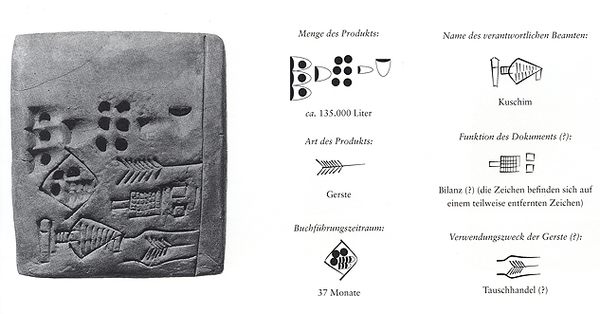 Die ältesten Keilschrift-Dokumente sind Zähltafeln aus Uruk und Mesopotamien, die ab ca. 3200 in Umlauf kamen.