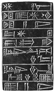 楔形文字是用芦苇笔写成的。芦苇笔一端是圆的,用于书写数字;另一端呈三角状,用于书写或长或短的楔形。