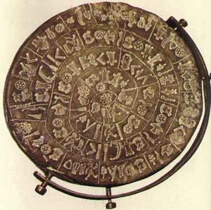 斐斯托斯圆盘的特别之处在于,其上的象形文字符号是以印章的方式绘上的——一个证明其为文字的强有力的证据。但奇怪的是它是唯一一块这种形式的出土文物。出于这个原因斐斯托斯圆盘上的符号至今仍未被破译。
