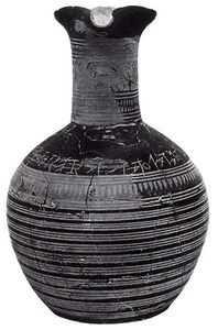 - Die älteste griechische Inschrift auf einer Vase aus der ersten Hälfte des 8. Jh. v. Chr. in linksläufiger Schrift in einem der "östlichen" Alphabete.