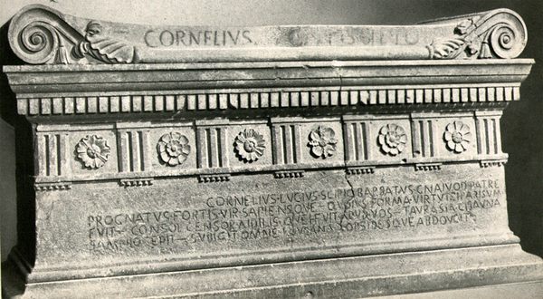 Eines der ersten rechtsläufigen Denkmäler lateinischer Schrift ist die Inschrift auf dem Sarkophag des Cornelius Lucius Scipio Barbatus aus dem Jahre 298 v. Chr. Es handelt sich um eine Monumental- bzw. Kapitalschrift (capitalis= Großbuchstabe).