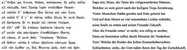 Beachten Sie, dass beide Epen mit einem Anruf der Musen beginnen. Diese sind es, die die Epen "Singen" bzw. "Sagen"; der Dichter ist nur ihr Organ.