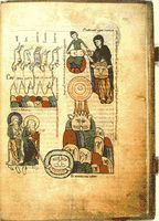 Eine andere Variante, das Verbot der Bildanbetung zu umgehen, ist das nichtikonische Vertändnis der Illustration. Der Begriff der Illustration leitet sich aus lat. illustrare = erleuchten, erhellen, ab. So gehen auch die christlichen Buchillustrationen ihrer Intention nach über die rein visuelle Darstellung hinaus. Sie dienen als Medium der Erleuchtung und versinnbildlichen geistige Gehalte. Ein markantes Beispiel hierfür ist das liber scivias, eine Illustration von 26 mystischen Visionen der Hildegard von Bingen (1098-1179) mit symbolhaften Bildern und prophetischen Ankündigungen (Abb. oben rechts). Die mystischen Visionen erhalten hier eine Bildgestalt, die ihren geistigen Inhalten gerecht werden soll.