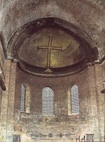 726 verbot Kaiser Leo III. die Idolatrie (Bildverehrung), wodurch der große byzantinische Bilderstreit in die Geschichte eingegangen ist: Bilderfreunde vertraten die Meinung, dass die einem Bild erwiesene Verehrung dem Urbild gelte und auf dieses übergehe. Die Ikonoklasten sahen im Bilderdienst hingegen ein heidnisches Ritual und damit eine Erniedrigung des Göttlichen; sie zogen das abstrakte Zeichen (Verschmelzung von Bild und Schrift) vo