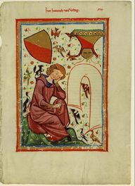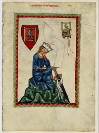 Zwischen 1310 und 1330 entstand eine der beruhmtesten Liedersammlungen, die sogenannte Manessische Liederhandschrift, die insgesamt 137 Autoren aus der Zeit von 1160 bis 1330 umfasst und auf die Zurcher Patrizierfamilie Manesse zuruckgeht. Den Liedern der Autoren ist jeweils eine Art "Portrat" vorangestellt, welches den Autor in symbolischer Form mit Attributen von Stand und Amt darstellt.