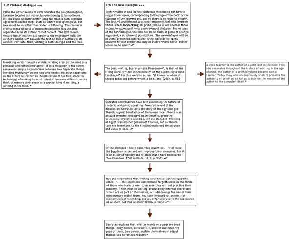Das Buch (Download) erschien ursprünglich mit einer Hypertext-Version auf Diskette, die heute nicht mehr lesbar ist. Die auf Platon bezogenen Passagen (S. 110 ff.) waren in der Hypertext-Version so verlinkt, wie es die Abbildung schematisch anzeigt.