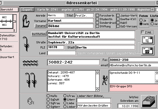 Durch Anklicken des Icons können Sie einen für Windows und Mac kompatiblen Clone dieser Datenbank herunterladen (200 K). Beachten Sie aber bitte, daß es sich um individuell angepaßte Lösungen handelt, die Sie für Ihre eigenen Zwecke umarbeiten müßten. Für Fehlfunktionen übernehme ich keine Haftung.