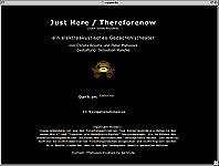 Erstellt in Zusammenarbeit mit Christa Brüstle (CB) für eine Ausstellung anläßlich des Treffens aller Sonderforschungsbereiche in Berlin 2001. Die Programmierung und Gestaltung wurde von Sebastian Handke in Flash relaisiert. Inhalt: "Thereforenow" von James Rouvelle (CB) James Rouvelle (CB) Auditives Memory-Spiel Gedächtnistheater Erinnerndes Hören Der Hörer als Performer (CB) Literatur und Links START