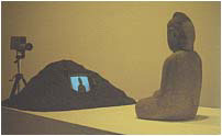 Der neue Angriff der Bilder auf den Rezipienten, wie er von Zizek mit einer Anspielung auf Petrarca als "Pest der Phantasmen" charakterisiert wird[62], scheint mit seiner schamlos übermäßigen Präsenz jeden Versuch, nach dem klassisch-kontemplativen Modell die Erfahrung eines selbstbezüglichen Blicks zu ermöglichen, in den Schatten zu stellen. Eben dieses alte Merkmal erinnernden Sehens mit neuen Mitteln zu realisieren, ist die Herausforderung, der sich Medienkünstler heute gegenübersehen. Allemal geht es ihnen darum, die vordergründige Informativität der elektronischen Bildpräsentation zugunsten einer Reflexion auf ihre situative und atmosphärische Qualität zu durchbrechen.[63] Hierfür seien abschließend einige Beispiele erwähnt. Was für Nietzsche noch eine monströse Vorstellung sein mußte: die Selbstansicht einer Statue, ist für die Videotechnik (deren Name schon selbstbewußte Sehfähigkeit verspricht) anscheinend kein Problem mehr: Sie kann die Aufnahme des Kameraauges simultan auf einem Monitor oder Display darstellen bei einer entsprechenden Aufstellung beider Geräte also sich selbst "betrachten". Mit entsprechenden Arrangements spielt Nam June Paik in seiner TV-Buddha-Serie. Eine frühe Arbeit, Video-Buddha II von 1974, zeichnet sich dadurch aus, daß sie die rekursive Anordnung in eine Sackgasse führt: Eine lebensgroße Buddha-Figur sitzt in Meditationshaltung vor einem Monitor, auf dem ihr eigenes Bild erscheint, das von einer dahinter aufgestellten Kamera aufgenommen wird. Dabei teilt sich die kontemplative Haltung der Statue dem Medium, in dem sie telepräsent ist, mit ja sie scheint im Flimmern des Bildschirms überhaupt erst ihre psychische Vibration zu erhalten. "Ausstrahlung" wird hier zu einem doppeldeutigen Begriff: Das technische Reproduktionsmittel erscheint ganz entgegen Benjamins Prognose nun als das eigentlich auratische Objekt, demgegenüber die Buddhafigur nur Diener ist, Priester einer Kultpraxis. Er ist es freilich nur im Sinne einer kinematographischen Illusion: Die Figur wird ihrer selbst ansichtig, ohne die technische Vermitteltheit dieses Selbstbezugs im Blick zu haben: die Kamera bleibt außerhalb des Sichtfeldes. Durch die Ruhe der Installation entsteht aber gleichwohl der Ausdruck kontemplativer Betrachtung, der ob seines offensichtlich schimärischen Charakters etwas hoffnungslos Ironisches bekommt. Mediatisierte Blicke sind auch ein Leitmotiv in den Arbeiten von Cindy Sherman. Schon mit ihren Untitled Film Stills verstand sie es, den Pygmalion-Effekt der sistierten Bewegung zu erzeugen hier im Stil von Filmstarposen.[64] Mit den Mannequin Pictures demaskiert sie dieses männliche Blickregime und legt dessen dialektische Kehrseite, das pornographische Prinzip der Überkonkretion, offen etwa, indem sie es durch Puppen in lüsterner Pose mit absurd großer Genitalöffnung, die den inneren Hohlraum freigeben, ad absurdum führt. Zwar ist Sherman mittlerweile auch im World Wide Web mit einem "Interactive Space" vertreten[65], doch handelt es sich hierbei lediglich um eine konventionelle Materialpräsentation in hypermedialer Struktur: In ihr werden schriftlich formulierte Reaktionen von Betrachtern auf Fotos der Künstlerin aufgenommen und als Elemente eines "storyspace" dargeboten, den neu hinzukommende Besucher betreten und kommentierend erweitern können. Was es heißen kann, mediale Selbstreferenz auch im Internet zu realisieren, ziegt die unter dem Namen jodi.org firmierende Gruppe von Künstlern, die im Rahmen der Documenta X ausstellte und seither ihre Web-Site kontunierlicher Weiterentwicklung unterzieht.[66] Das Markenzeichen der Gruppe sind "virale Interfaces"[67], die sich unter den Benutzereingaben kollabierend verhalten. Schon die auf der Ars Electronica 1992 preisgekrönte Installation "Zerseher" von Sauter und Lüsebrink hatte diesen buchstäblich bestürzenden Effekt eingesetzt: Mithilfe einer "Eyetracking"-Kamera wurden dort die Blicke des Betrachters aufgenommen und in Steuerbefehle übersetzt, die das dargebotene Bild immer genau an den angeblickten Stellen zerstörten eine erhellende Lektion über den destruktiven Charakter des identifizierenden Sehens, das als Kontrafaktur zur imaginativen Restitution bei der Betrachtung von Torsi erfahren werden kann. In den Installationen von jodi.org nun wird der Benutzer in eine noch heillosere Interaktion verstrickt, indem er immer wieder zum Input aufgefordert, dieser aber stets nur verstümmelt repräsentiert wird. Auch bei diesem elektronischen Torso scheint es keine Stelle zu geben, die den Betrachter nicht sieht, da seine Spuren überall erkennbar sind; doch je mehr er sich ihrer zu versichern sucht, um so fremder wird er sich im selbstbezüglichen Blick. Was es mit diesem unter dem Mandat der interaktiven Bildschirmmedien auf sich hat, wird durch eine Web-Seite des französischen Internet-Künstlers Valéry Grancher auf unüberbietbar schlichte Weise deutlich gemacht: Seine Installation heißt "nomemory" und stellt auf minimalistische Weise jene Leere wieder her, die das Medium im Überfluß der Bilder zu vernichten droht: Unter der Überschrift "void" zeigt sie auf dunkelgrauem Hintergrund ein scharzes, etwa vier mal vier Zentimeter großes Quadrat. Ansonsten nichts weiter als den Satz: "Observez ce carré noir pendant une seconde, mémorez vous un moment intense de votre vie, regardez votre montre, mémorisez l'heure exacte, désormais, chaque jour, la même heure remémorez vous cet instant."[68]Das schwarze Quadrat, eine leere Fläche, soll dieser Anweisung zufolge durch Ritualisierung zum Anlaß einer idolatrischen Selbstreflexion werden. In der Tat bietet die Objektlosigkeit des Blickfangs die Chance, das Erinnerungsbild an einen intensiven Moment des eigenen Lebens austeigen zu lassen. Doch die ernste Aufforderung zum Kult des selbstproduzierten Bildes hat einen spielerischen Nebeneffekt, auf den es der Künstler eher abgesehen zu haben scheint. Dank der optischen E