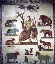 Orpheus inmitten der durch seine Musik gezähmten Tiere (3. Jh. n. Chr.).