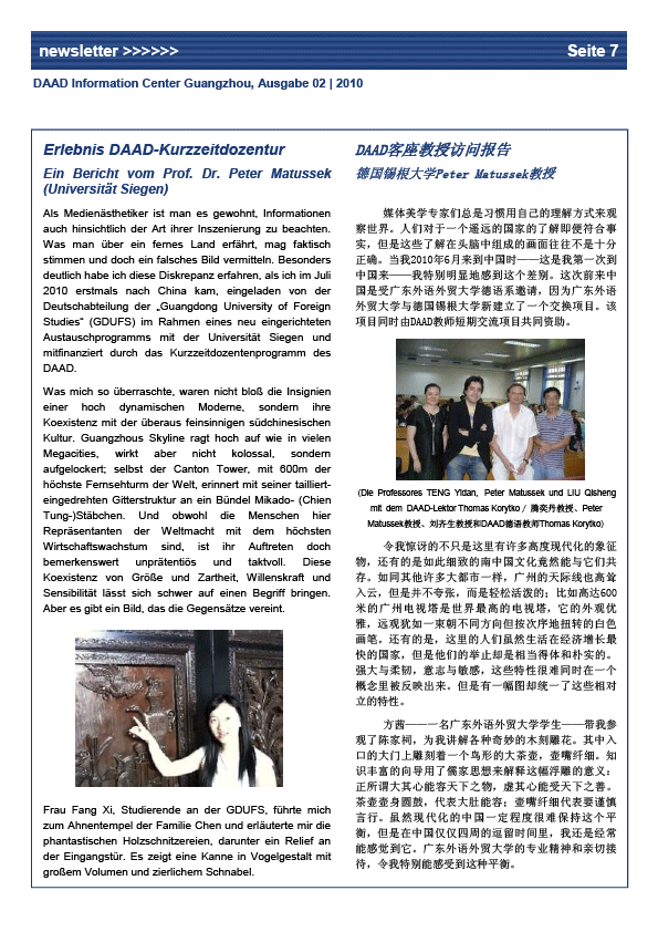 Erschienen in: DAAD-Newsletter IC Guangzhou, 30.09.2010, S. 7 f. Download (pdf) Langfassung: http://www.daad-guangzhou.cn Download (pdf)